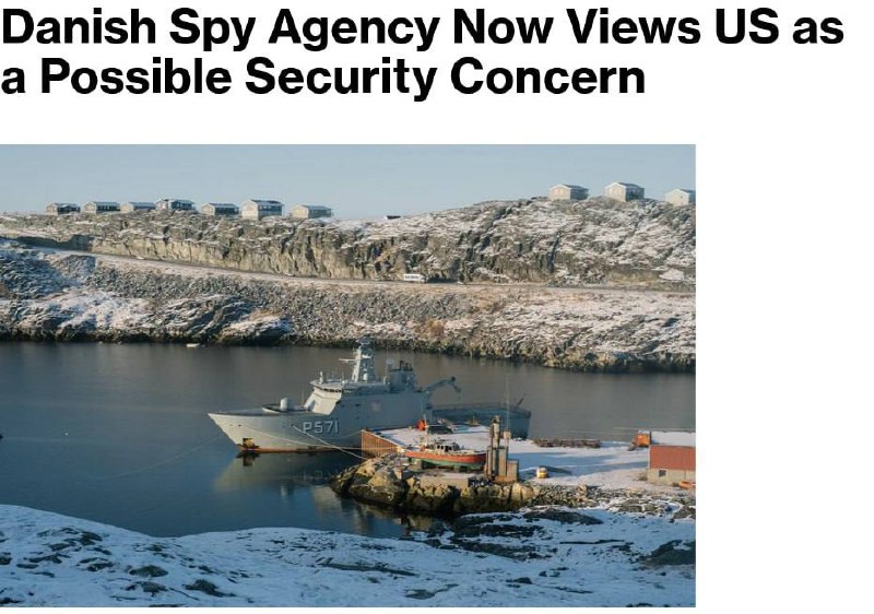 Служба военной разведки Дании в ежегодном отчете впервые охарактеризовала США как потенциальную угро… 10.12.2025Нацыянальная бясьпека. Дайджэст Служба военной разведки Дании в ежегодном отчете впервые охарактеризовала США как потенциальную угрозу безопасности, ссылаясь на политику администрации Трампа, — Bloomberg