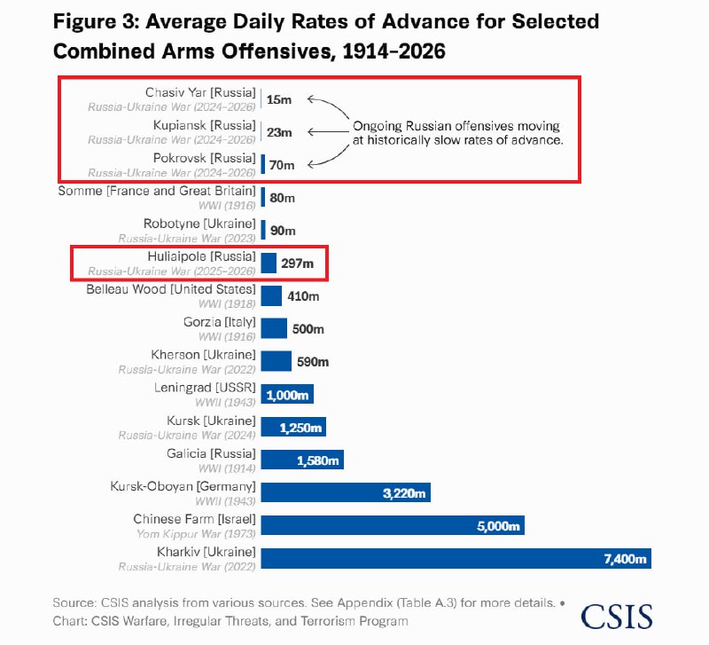 CSIS* обновил таблицу скорости продвижения наступающей стороны в избранных сражениях, начиная с Перв…