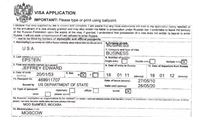 В 2011 году Эпштейн получил российскую визу по приглашению организации ветеранов ФСБ «Вымпел». Заполняя заявление, именно её он указал в качестве приглашающей стороны. (Источник «Новая газета. Европа»).