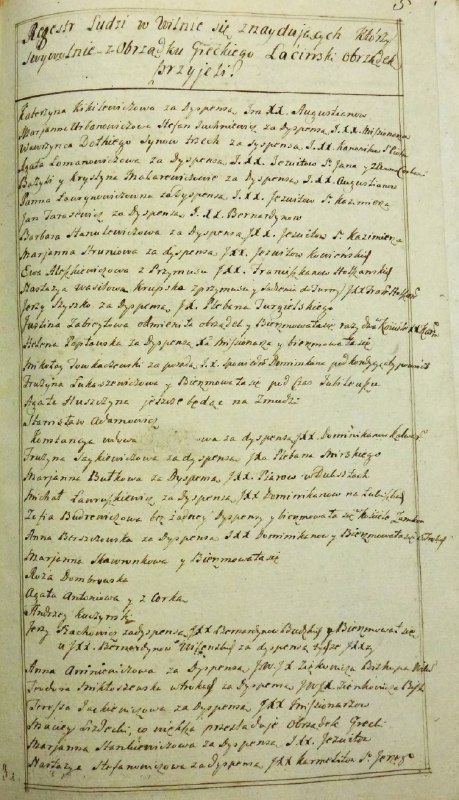 Жыхары Вільні грэцкага абраду, якія перайшлі ў лацінскі абрад. 1760-я гг.