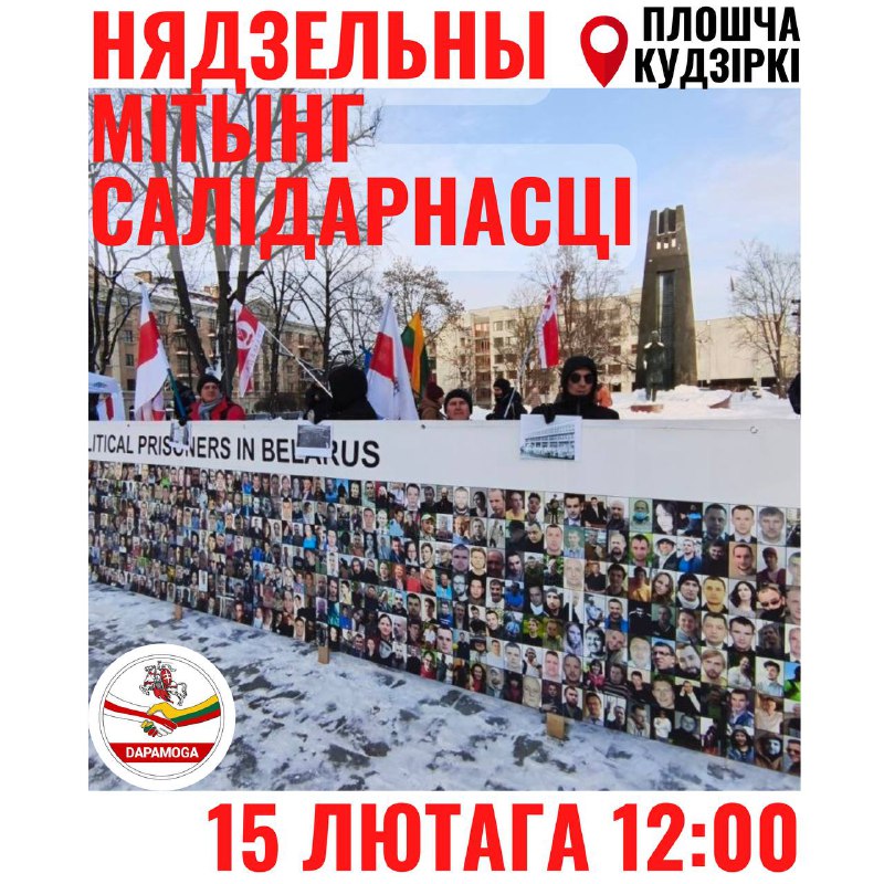 Заўтра, 15 лютага ў 12:00, сустракаемся на плошчы Вінцаса Кудзіркі на традыцыйным нядзельным мітынгу салідарнасці.