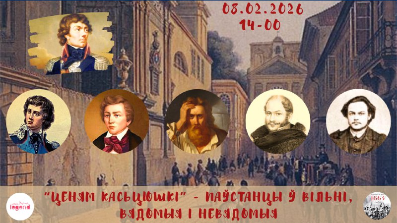 Запрашаем вас у гэтую нядзелю 8 лютага на экскурсію “Ценям Касьцюшкі”: паўстанцы ў Вільні, вядомыя і невядомыя, дзе мы згадаем некаторыя імёны паўстанцаў з розных паўстаньняў, цікавыя факты зь іх жыцьця ды месцы, зь імі зьвязаныя.