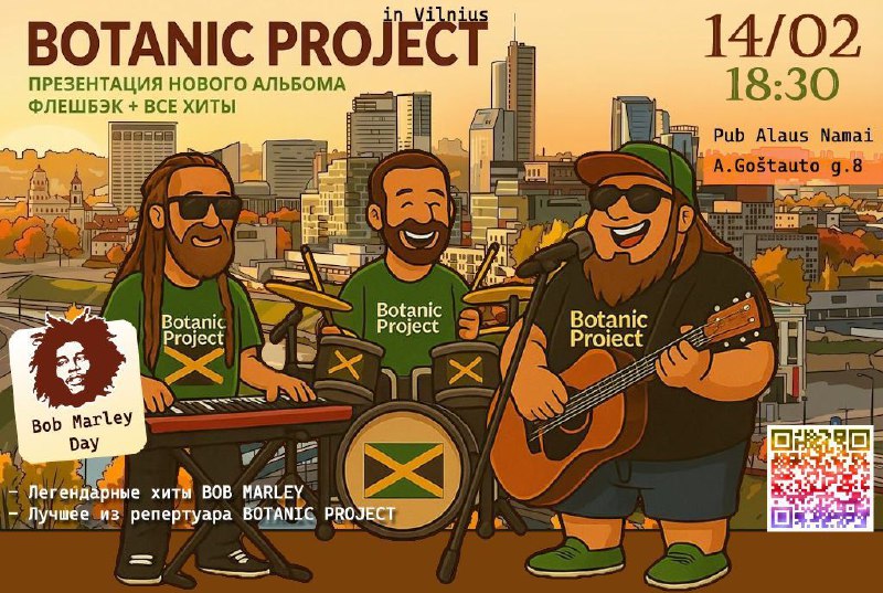 14 февраля легендарная беларуская рэгги-группа BOTANIC PROJECT возвращается с большим сольным концертом в Pub Alaus Namai! Это первый концерт 2026 года в поддержку нового альбома «Флэшбэк» — и это будет настоящее музыкальное путешествие, которое вы не захотите пропустить.