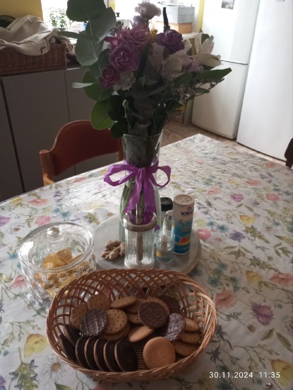 Цудоўныя букеты ад удзячных Дапамозе беларусаў, гарбата з печыўкамі ад добрых людзей, што завіталі сёння да нас у госці на кухню.