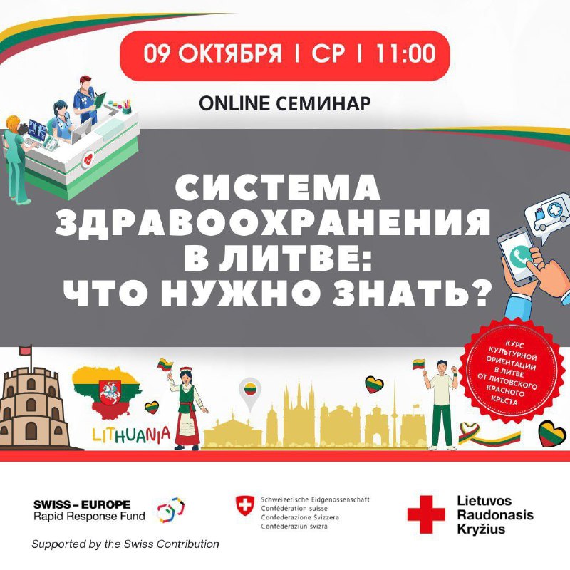 Запрашаем вас зарэгістравацца і прыняць удзел у бясплатным анлайн-семінары “Сістэма аховы здароўя ў Літве: што трэба ведаць?”, які адбудзецца ў сераду 9 кастрычніка ў 11:00 і будзе праводзіцца спецыялістам Літоўскага Чырвонага Крыжа.