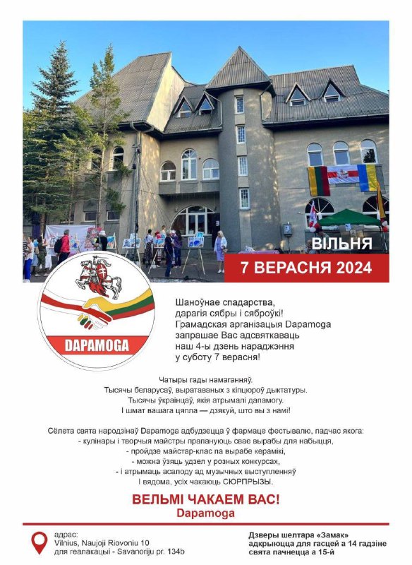 Грамадская арганізацыя Dapamoga запрашае Вас адсвяткаваць наш 4-ы дзень нараджэння у суботу 7 верасня!