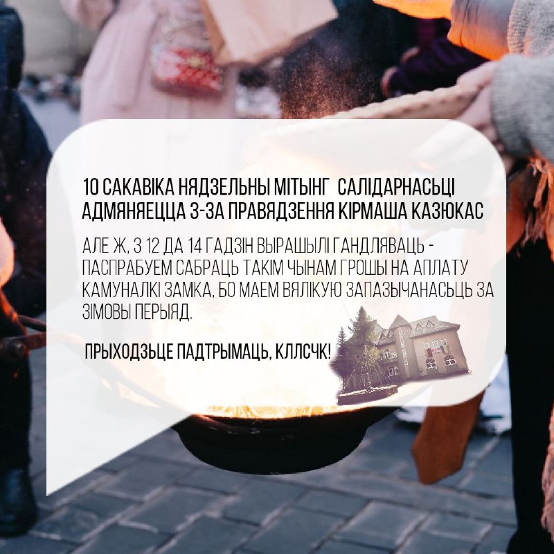Усе атрыманыя грошы пойдуць на аплату камуналкі Замка, дзе знаходзяць прытулак рэпрэсаваныя беларусы і экс-палітвязні, якія былі вымушаныя пакінуць Беларусь з-за палітычна матываванага крымінальнага пераследу. Мы маем вялікую запазычанасць за камунальныя паслугі за зімовы перыяд, данатаў нажаль пакуль не хапае каб пакрыць выдаткі Замка на камуналку – таму вырашылі паспрабаваць сабраць хоць трошкі грошаў на кірмашы гандлем. Прыходзьце падтрымаць!