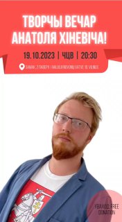 Шаноўнае спадарства!Запрашаем вас на творчы вечар Анатоля Хіневіча! Чацвер 19 кастрычніка 20:30 Зам… 18.10.2023Dapamoga LT | Замак у Вільнюсе Шаноўнае спадарства!Запрашаем вас на творчы вечар Анатоля Хіневіча! Чацвер 19 кастрычніка 20:30 Замак, 2 паверх (Naujoji Riovoniu 10)