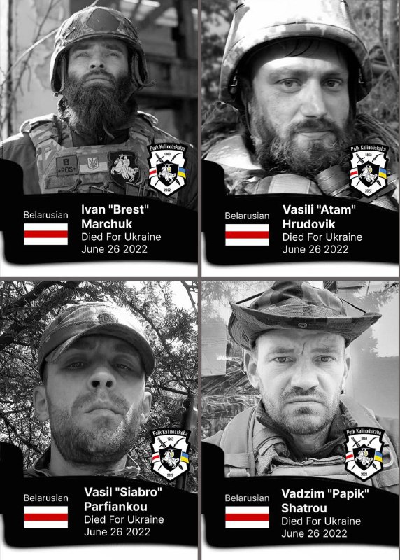 У баі з танкавай калонай рускіх пад Лісічанскам загінуў камандзір батальена “Волат” палка Каліноўскага Брэст. Разам з ім не вярнуліся з бою байцы-беларусы Сябро, Папік, Атам.