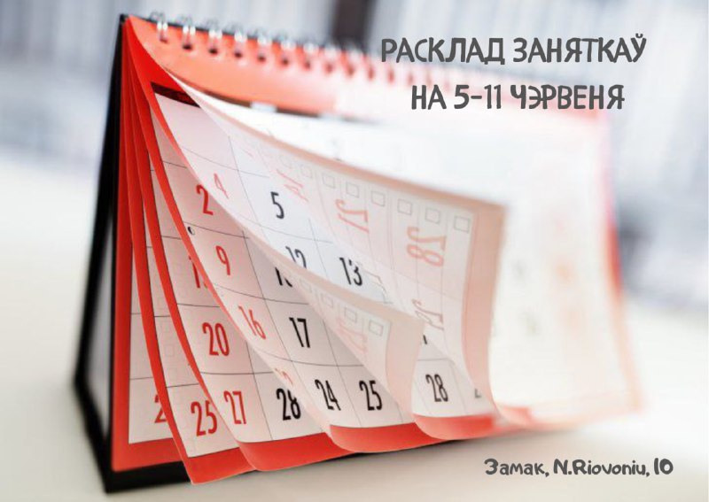 Аўторак11:00 – Заняткі па літоўскай мове для пачаткоўцаўСерада11:00 – Заняткі на фізічнай культуры з…