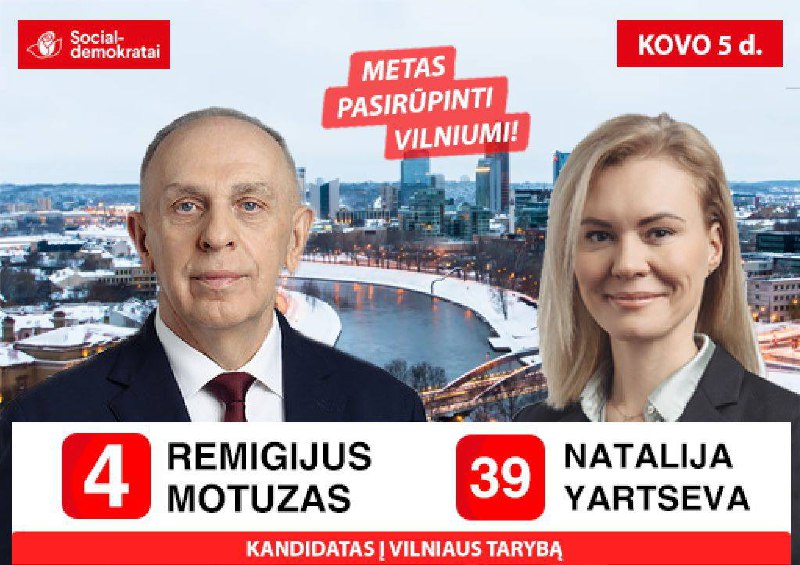 В ближайшие месяцы мы столкнемся с важным событием для Вильнюса – Выборы в муниципалитет. Я, Наталья Ярцева, буду участвовать в этих выборах и буду представлять тех, кто выбрал Вильнюс своим домом и кто любит наш город. В случае моего избрания в нашем муниципалитете появится голос иностранных жителей, которые выбрали Вильнюс своим домом, и мы будем иметь своего человека, который будет представлять нас в муниципалитете. Я буду решать вопросы всех жителей, включая иностранцев, поскольку вопросы городской жизни касаются всех жителей одинаково.