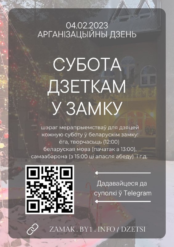 Паважнае спадарства!Нагадваем Вам, што на гэту суботу мы падрыхтавалі для Вашых дзяцей шмат цікавых … 03.02.2023Dapamoga LT | Замак у Вільнюсе Паважнае спадарства!Нагадваем Вам, што на гэту суботу мы падрыхтавалі для Вашых дзяцей шмат цікавых заняткаў. Далучайцеся! 4 лютага 18:00Замак N. Rioviniu 10
