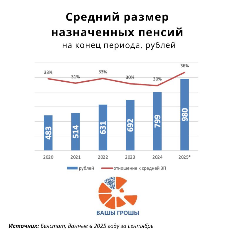 С 2020 по 2025 год средние пенсии в Беларуси выросли с 480 до 980 рублей. Но если вспомнить цены в аптеке и магазине, картина уже не так хороша.