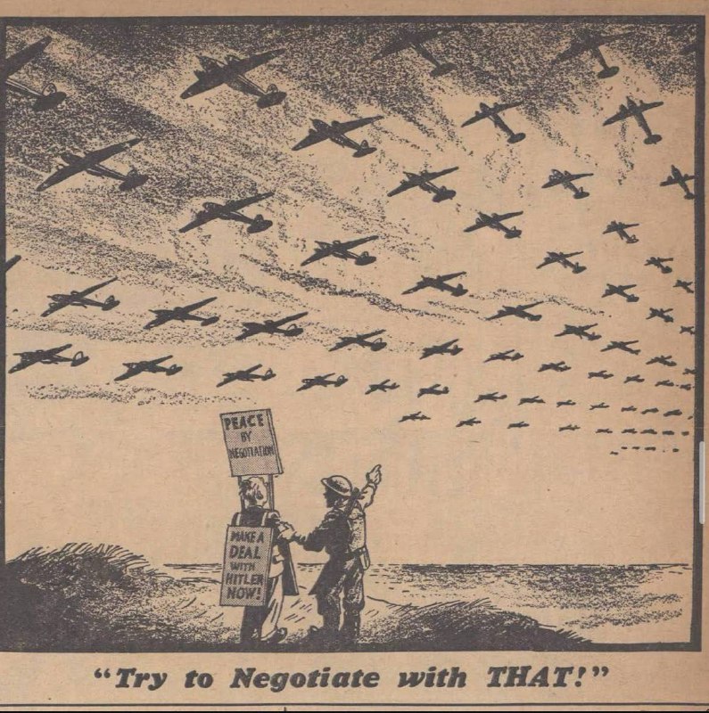 16 мая 1940 года британская газета Daily Mirror опубликовала эту карикатуру и посвятила ее всем идиотам, призывавшим в то время к переговорам с Гитлером. «Попробуй договориться с ним».