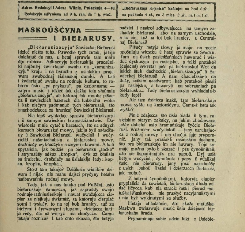 Артыкул пра тое, як у БССР праводзілася “беларусізацыя”, але далей беларускую мову і культуру выцясн… 02.01.2026Мінск Навіны Артыкул пра тое, як у БССР праводзілася “беларусізацыя”, але далей беларускую мову і культуру выцясняла расейская і расейшчына. Артыкул 1926 года, у нейкай ступені далей актуальны.