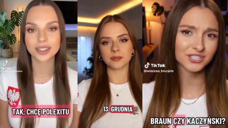 У відэароліках згенераваныя штучным інтэлектам прывабныя маладыя дзяўчыны, апранутыя ў адзенне з нацыянальнымі польскімі сімваламі, заклікаюць Польшчу пакінуць Еўрапейскі саюз. https://nashaniva.com/384877