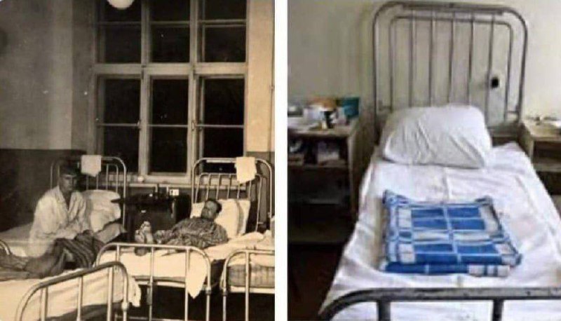 Потрясающая картинка. Разница между фотографиями – 80 лет. Это те самые кровати, которые привезла в 1943 году жена Черчилля наряду с другим медицинским оборудованием в военный госпиталь Ростова.