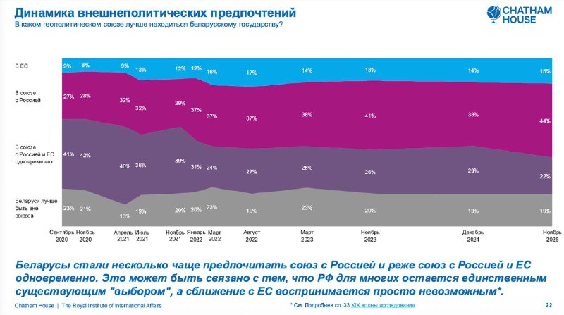 Chatham House: прарасійскія настроі ў Беларусі — на максімуме за 5 гадоў. Што яшчэ паказала апошняе … 03.12.2025Вольны Захад інфа Chatham House: прарасійскія настроі ў Беларусі — на максімуме за 5 гадоў. Што яшчэ паказала апошняе апытанне?Расійскую вайну ва Украіне падтрымліваюць толькі 27% (у снежні 2024-га такіх было 32%). Асуджаюць яе 38%, а астатнім 34% — цяжка адказаць.Што думаюць беларусы пра ядзерную зброю, вызваленне палітвязняў і сітуацыю ў краіне: https://euroradio.fm/chatham-house-prarasiyskiya-nastroi-u-belarusi-na-maksimume-za-5-gadou?utm_source=telegramСпасылка, якая працуе без VPN