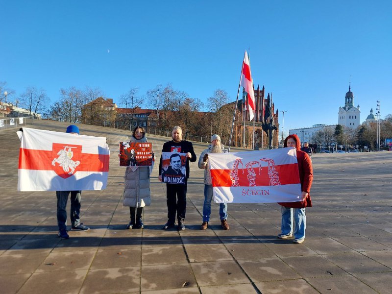 Беларусы Шчэціна сабраліся на традыцыйную нядзельную акцыю каб падтрымаць палітвязьняў у Беларусі.
