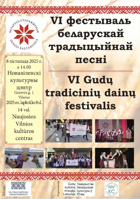 8 лістапада 2025 году ў Новавіленскім культурным цэнтры Вільні адбудзецца 6 фестываль беларускай традыцыйнай песні ” Беларусь старажытная “.