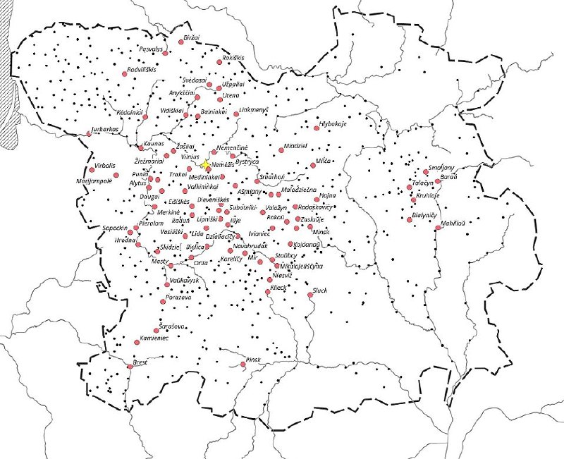 Выклікаючае жаданне паклону даследванне кандыдата гістарычных навук, Мікалая Аляксандравіча Волкава, падаравала нам карту з размяшчэннем гарадоў і мястэчак Вялікага Княства Літоўскага, Рускага, Жамойцкага і іншых, у якіх у XVI–XVIII стагоддзях мелася вуліца “Віленская”.