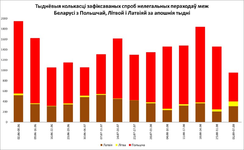 Пры гэтым на розных частках межаў Беларусі з краінамі ЕЗ дынаміка вельмі адрозніваецца: на беларуска-літоўскай маем летні максімум атак (93, больш было толькі ў траўні), а на на беларуска-польскай маем мінімум аж з красавіка (крыху больш за 550; меней). На беларуска-латвійскай мяжы ўсё плюс-мінус стандартна…