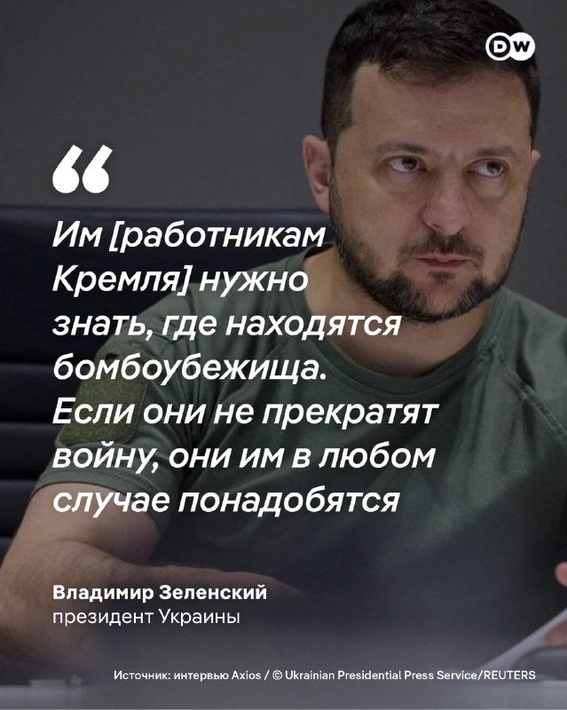 Если Россия не прекратит войну, чиновники в Кремле должны убедиться, что знают, где находится ближай… 25.09.2025Нацыянальная бясьпека. Дайджэст Если Россия не прекратит войну, чиновники в Кремле должны убедиться, что знают, где находится ближайшее бомбоубежище, заявил Владимир Зеленский в интервью The Axios Show.@dwglavnoe