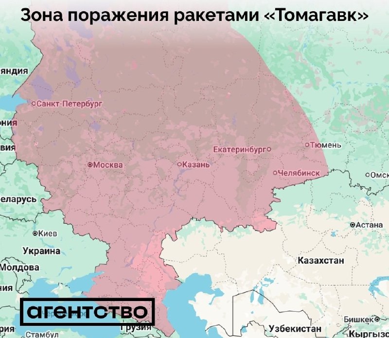Американские ракеты «Томагавк» в случае их передачи Киеву смогут долетать до Тюмени на востоке и до Мурманска и Архангельска на севере. Всего в зоне поражения окажутся около 60 регионов европейской части России, на Урале и в Сибири. В их числе Москва и Санкт-Петербур.