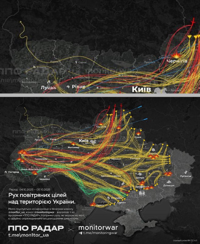 Мониторинговый канал Mon1tor_ua опубликовал схему движения российских БпЛА и ракет, атаковавших Украину минувшей ночью. Флагшток попросил специалиста канала eRadar прокомментировать траектории, затрагивающие Беларусь.