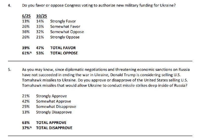 Украина и Зеленский снова завоёвывают симпатии республиканских избирателей, в особенности, среди верующих. Большинство респов выступает за поставки “Томагавков” Украине, – The Wall Street Journal и Semafor со ссылкой на опросы.