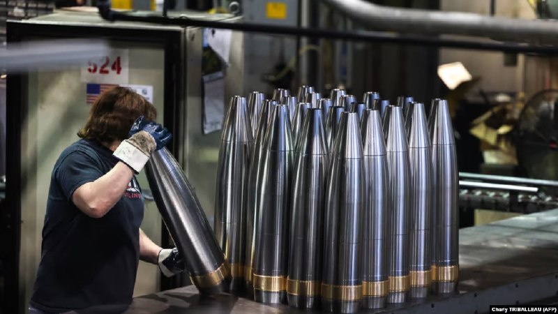 На фота — вытворчасьць 155-мілімэтровых снарадаў на заводзе ў ЗША
