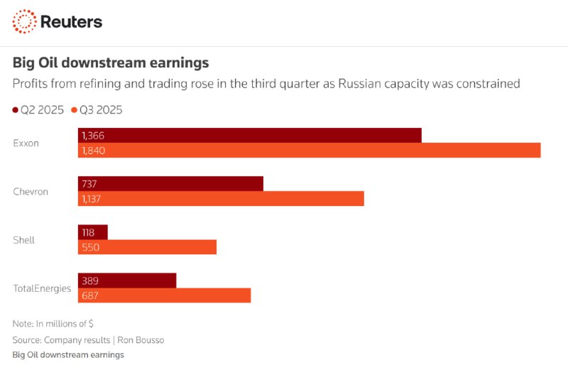Reuters: западные нефтяные компании переживают небывалый рост в связи с санкциями против российский нефтянки и ударами украинских дронов.