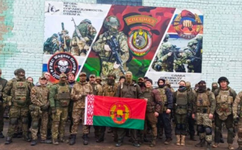 Центр специального назначения Внутренних войск МВД РБ украсили символикой ЧВК “Вагнер” и российского спецподразделения “Витязь” на фоне триколора.