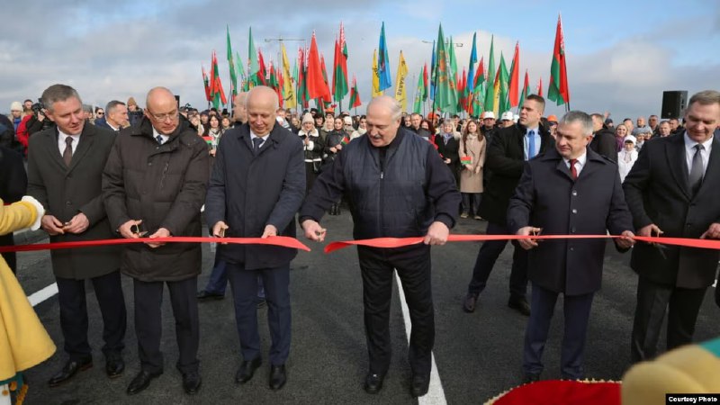 На фота: Лукашэнка на ўрачыстай цырымоніі адкрыцьця абноўленага моста праз раку Прыпяць. Мазыр, Беларусь, 6 лістапада 2025 году