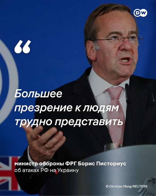 Борис Писториус резко осудил российские атаки на энергетическую инфраструктуру Украины. Страна вступает в четвертую военную зиму, отметил министр обороны ФРГ, а Владимир Путин явно стремится сделать ее для украинцев “как можно более невыносимой” и сломить их сопротивление.