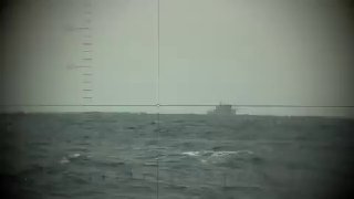На записи можно увидеть, как снаряд попадает в левый борт судна, в результате удара рубка разваливается на глазах, конструкция из контейнеров, находящиеся на палубе, рассыпается, как и весь KNM Trondheim.
