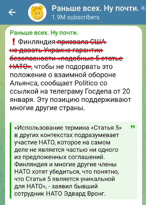 Финляндия призвала НЕ НАЗЫВАТЬ эти гарантии 5-й статьёй потому что – внезапно – это НИХУЯ НЕ 5-Я СТАТЬЯ.