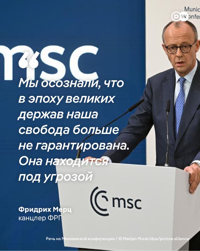 Канцлер ФРГ Фридрих Мерц произнес программную речь на 62-й Мюнхенской конференции по безопасности (MSC). Ключевые тезисы: