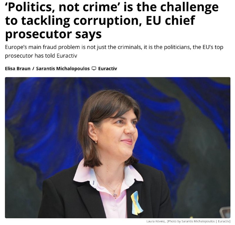 В интервью Euractiv Лаура Ковеши рассказала, как высокопоставленный чиновник Еврокомиссии попросил её «приглушить» публичные заявления о масштабах коррупции и мошенничества, которые раскрывает её офис.
