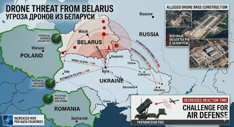 Россия начала строительство военных баз для дальнобойных дронов на территории Беларуси, что может изменить баланс безопасности в регионе.