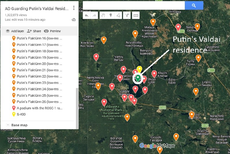 Путин продолжает наращивать ПВО вокруг своей резиденции в Валдае.