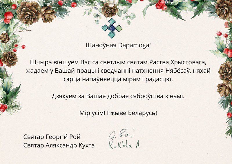 Дзякуй за давер, сяброўства і супольны шлях. Няхай гэтыя Каляды будуць светлымі для ўсіх нас!