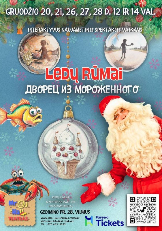 Нашы сябры з творчай прасторы MROJ Hall Teatras (Gedimino pr. 28) у перыяд зімовых святаў паказваюць цудоўны дзіцячы спектакль«Палац з марожанага»(на рускай мове).