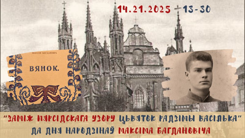 Сябры, у гэтую нядзелю 14 сьнежня а 13-30 запрашаем вас на шпацыр па Вільні “Заміж пярсідскага узору цьвяток радзімы васілька”, прысьвечаны дню народзінаў Максіма Багдановіча, які адзначаўся 9 сьнежня, а таксама гісторыі таго, як Слуцкія паясы сталі беларускім нацыянальным брэндам.
