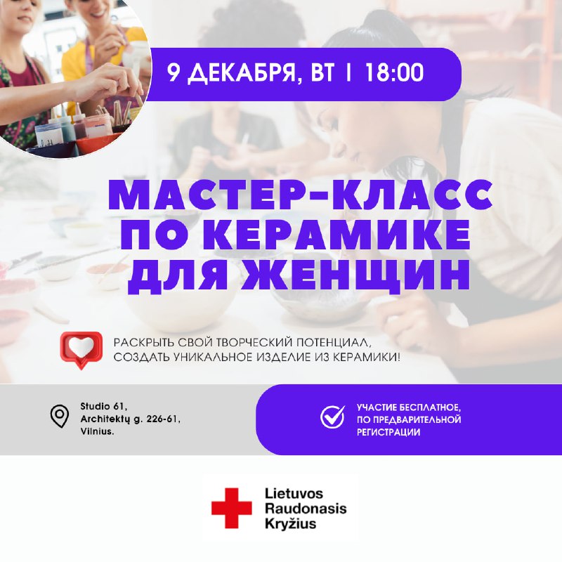 Приглашаем женщин-мигранток принять участие в бесплатном Рождественском мастер-классе по керамике, который состоится во вторник 9 декабря в 18:00 в Вильнюсе!