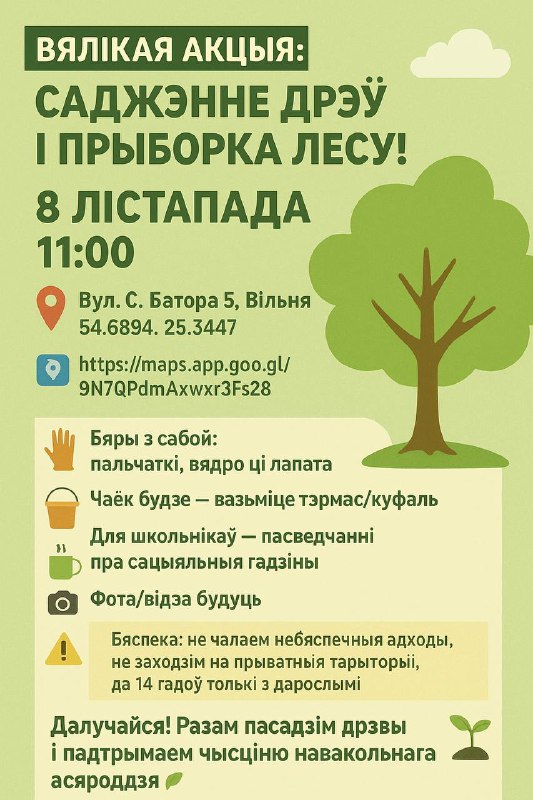 Жыццёвая акцыя! Ужо утрам , 8 лістапада а 11:00, запрашаем на высадку дрэў і прыборку ў лесе Батора!
