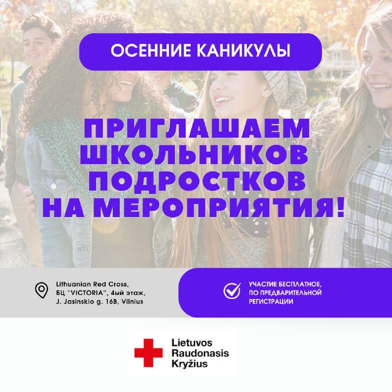 На осенних каникулах Литовский Красный Крест приглашает школьников-подростков (10 лет и старше) не…