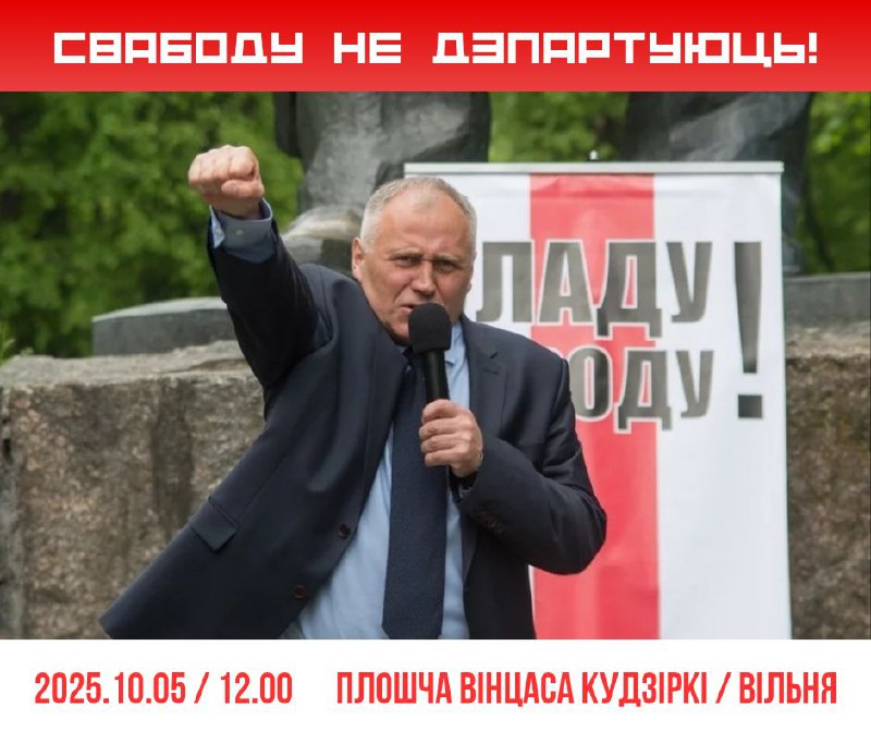 Публічная акцыя “Свабоду не дэпартуюць!», натхнёная Мікалаем Статкевічам. Акцыя адбудзецца 2025.10….