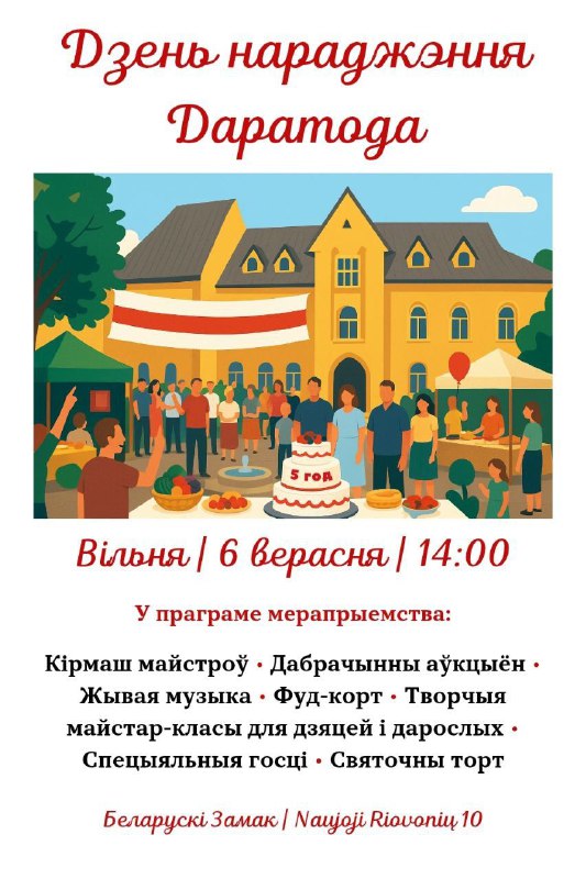 Шаноўнае спадарства, сябры і паплечнікі!6 верасня з 14.00 на тэрыторыі Замка беларусаў Вільні будзе …