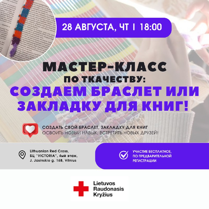 Литовский Красный крест приглашает создать свой уникальный браслет или закладку для книг на бесплатном мастер-классе по ткачеству, который состоится в четверг 28 августа в 18:00!